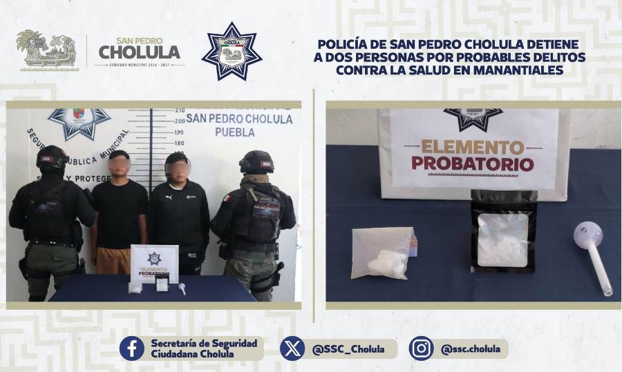 SSC Cholula detiene a dos por probables delitos contra la salud en Manantiales