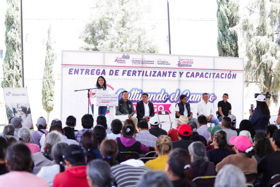 Lupita Cuautle encabeza segunda entrega de fertilizante a familias productoras