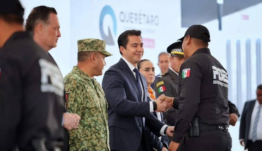 El presidente municipal de Querétaro, Felipe Fernando Macías, asistió a la entrega del Mérito Policial junto al gobernador del estado, Mauricio Kuri González, en un acto realizado con motivo del 52 aniversario de la Policía Estatal.