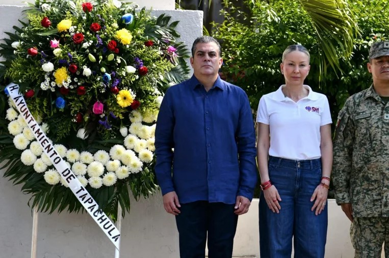 Acompañado por la presidenta honoraria del Sistema DIF Tapachula, Beba Pedrero, el alcalde destacó que Fray Matías fue un hombre de pensamiento profundo, convicciones firmes y visión universal, cuya obra sigue siendo referente en la historia educativa y social de la región.