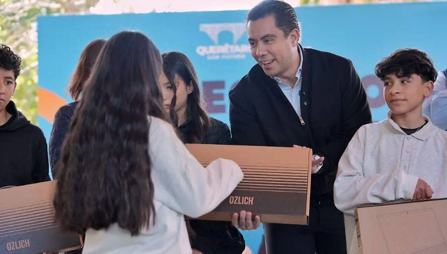 Felipe Macías Olvera, presidente municipal de Querétaro, encabezó la entrega de aparatos electrónicos, en donde destacó que con dicha herramienta pueden adquirir habilidades tecnológicas.
