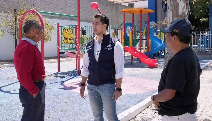 Felipe Macías Olvera, presidente municipal de Querétaro, entregó la rehabilitación del parque de la colonia Las Plazas, ubicada en la delegación Josefa Vergara y Hernández, con lo que se beneficia a más de mil 700 habitantes.