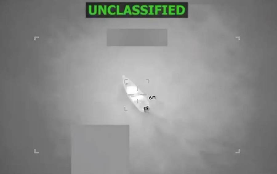 El Pentágono difundió un video en blanco y negro en el que se ve una lancha que circula a velocidad normal, hasta el momento en que explota.