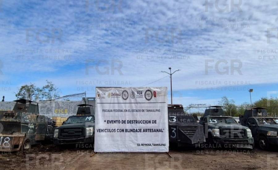 Ciudad de México. En el marco del Programa “Destino de Bienes y Objetos del Delito”, la Fiscalía General de la República (FGR), destruyó 18 vehículos con blindaje artesanal de los denominados “monstruos”, que de acuerdo con las investigaciones, eran utilizados por las organizaciones criminales cártel del Golfo , así como cártel del Noreste y estaban relacionados con 16 carpetas de investigación.