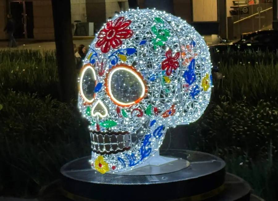 En el marco de las celebraciones por el Día de Muertos, el Gobierno de la Ciudad de México inauguró esta noche una exposición de arte lumínica sobre la avenida Paseo de la Reforma, donde se pueden apreciar 14 piezas con diferentes figuras, entre ellas, una Catrina monumental de 9.5 metros.