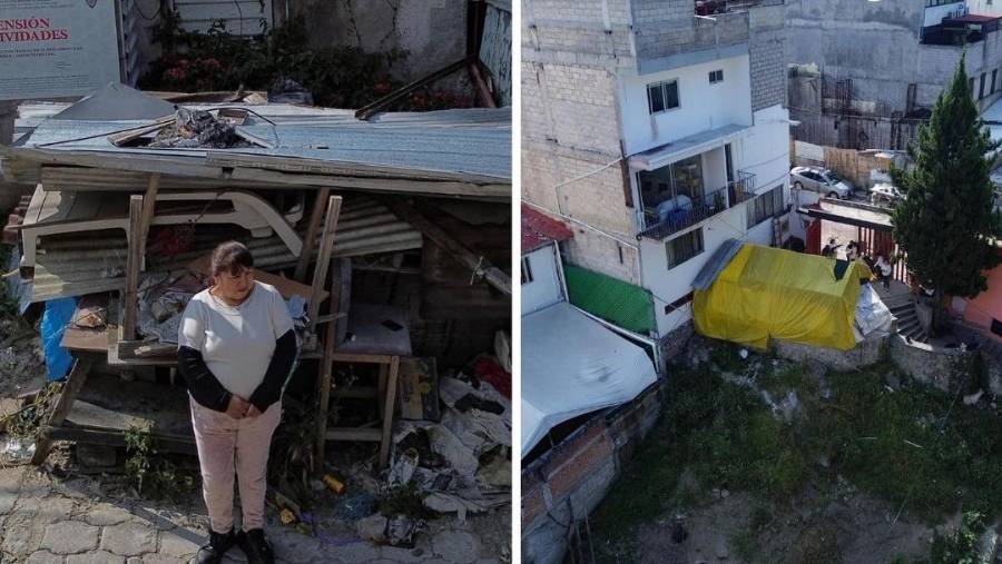 Ciudad de México. A la intemperie en el deportivo de la colonia Lomas del Chamizal, en la alcaldía Cuajimalpa, entre paredes de lona, una silla como puerta y camas con una base de tabiques y tablas de madera, sobreviven desde hace más de dos años tres de cinco familias que fueron desalojadas de su vivienda el 19 de octubre de 2023. La construcción de un edificio a cargo de la inmobiliaria Effort, que realizó excavaciones profundas bajo su predio, ubicado entre las calles Navío y Armada de México, provocó un deslizamiento y el derrumbe de casi toda la casa.