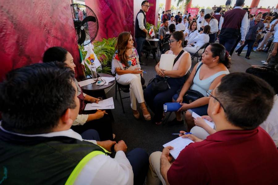 “Vengo atender de manera personal a todas las personas, me acompañan todo mi gabinete, y dependencias federales como la CFE, CONAVI, INFONAVIT, IMSS-Bienestar, el objetivo, es que en un mismo lugar puedan encontrar su voz y tomarnos de la mano para poder resolver dudas, temas de injusticias” recalcó Mara Lezama.