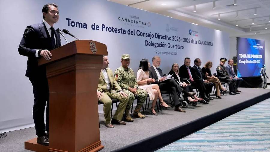 El presidente municipal de Querétaro, Felipe Fernando Macías, indicó que en la capital se garantiza orden y certeza jurídica para las inversiones; esto durante su participación en la toma de protesta del Consejo Directivo 2026-2027 de la Cámara Nacional de la Industria de Transformación (Canacintra), delegación Querétaro