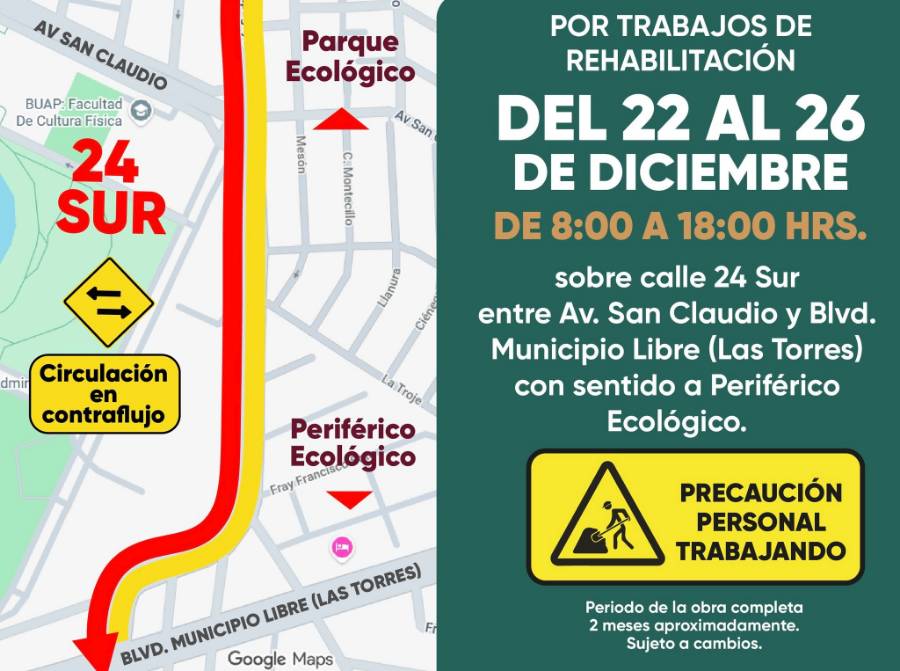 Gobierno anuncia cierres parciales y contraflujo en 24 Sur por obras de rehabilitación