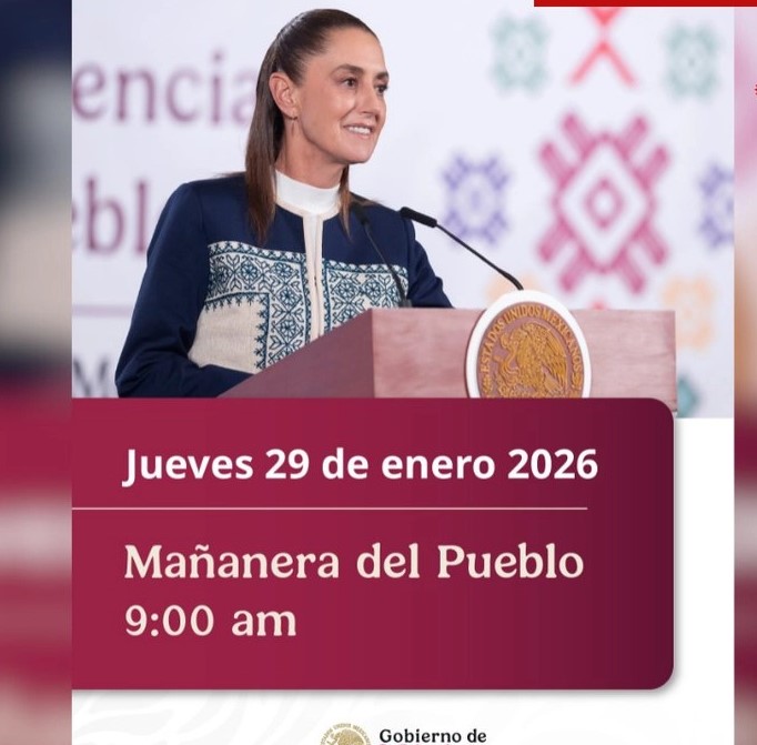 “Mañana jueves 29 de enero, la conferencia matutina cambia de horario. Nos vemos a las 9:00 am desde Palacio Nacional”, informó la mandataria en X.