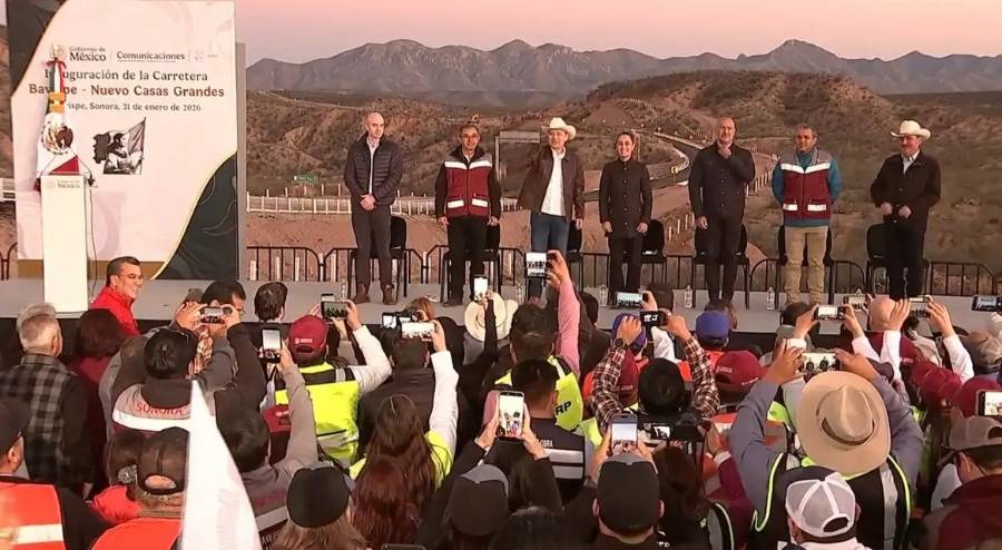Al inaugurar la carretera Bavispe-Nuevo Casas Grandes -iniciada en el gobierno anterior-, la presidenta Claudia Sheinbaum Pardo recordó que este año se destinarán un billón de pesos a los programas de bienestar, “dinero que antes se robaban y hoy se va directo al pueblo de México a través del Banco de Bienestar”.