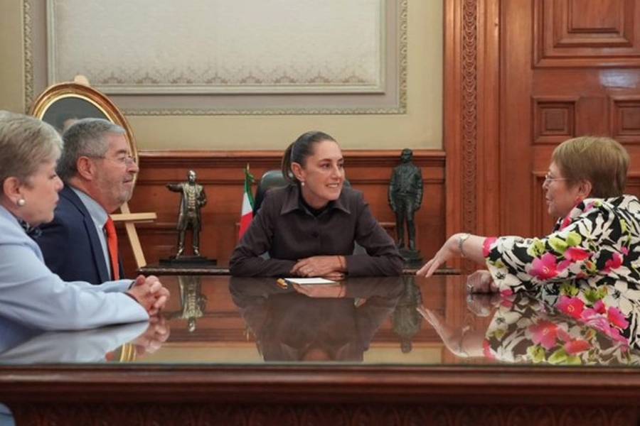 Ciudad de México. La presidenta Claudia Sheinbaum se reunió esta tarde en sus oficinas de Palacio Nacional con la expresidenta de Chile Michele Bachelet.