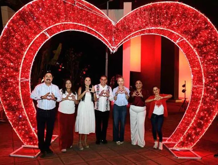El presidente municipal de Tapachula, Yamil Melgar Bravo y la directora general del COBACH, Viridiana Figueroa García en representación del gobernador del estado, Eduardo Ramírez Aguilar, inauguraron los escenarios alusivos al Día del Amor y la Amistad en el parque Bicentenario como parte de la estrategia Tapachula se Vive con Amor y Humanismo.