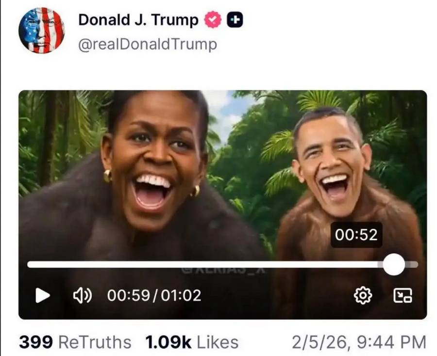 Washington. El video racista publicado por el presidente estadunidense Donald Trump en redes sociales, que mostraba al exmandatario Barack Obama y su esposa como primates en una jungla, fue eliminado tras críticas tanto de republicanos como de demócratas que señalaron que era ofensivo.